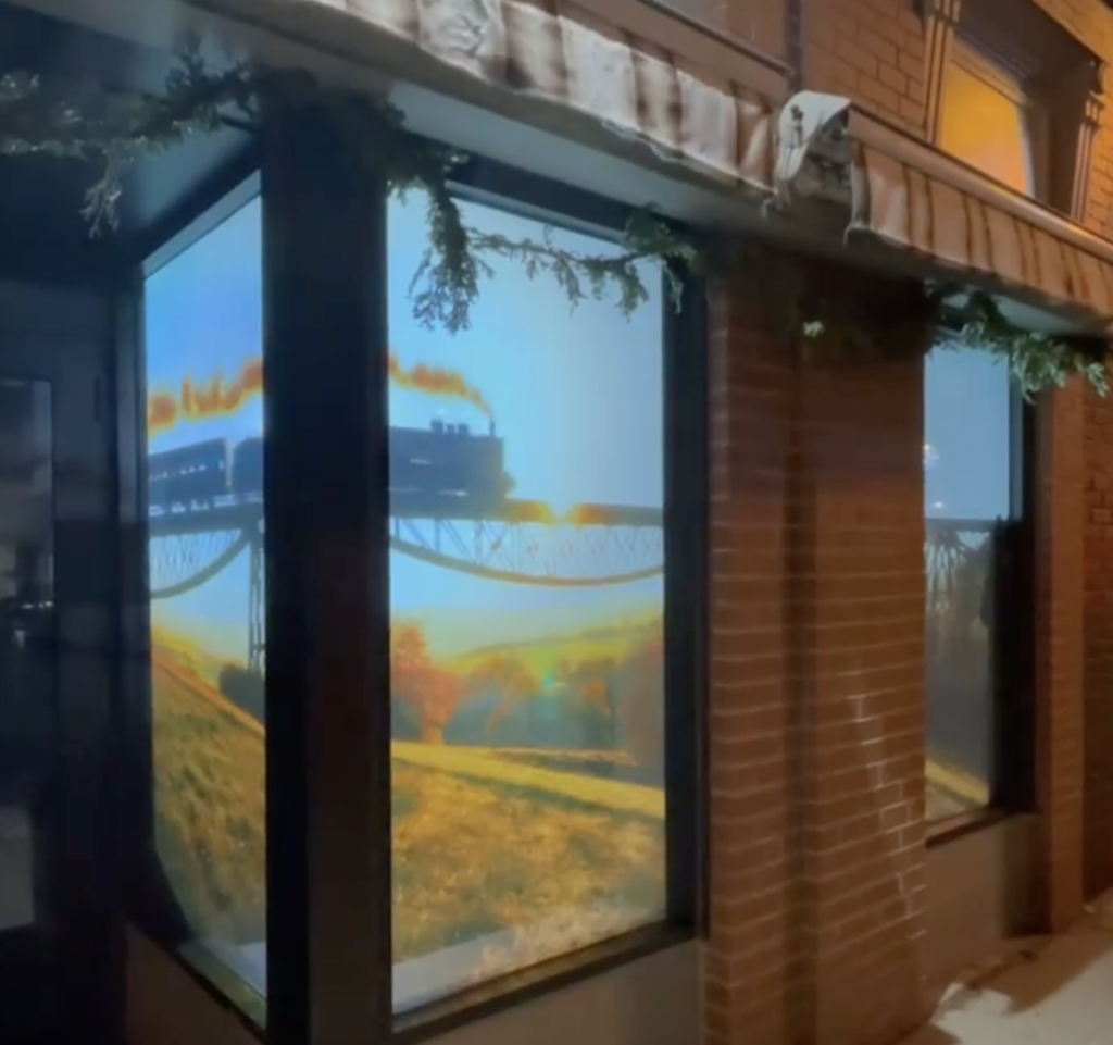 The Solution: We are in the film and television business. We use the power of cinema to illuminate extraordinary stories. What if we transformed our storefront windows into a giant video projection screen. Using our professional projectors and projection mapping technology, we designed a series of video vignettes that changed with the season with a Christmas theme, a Valentine’s Day theme and a Welcome to Spring theme.